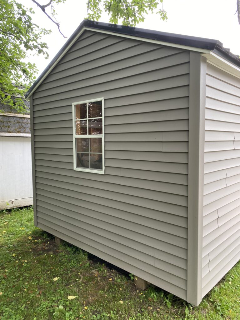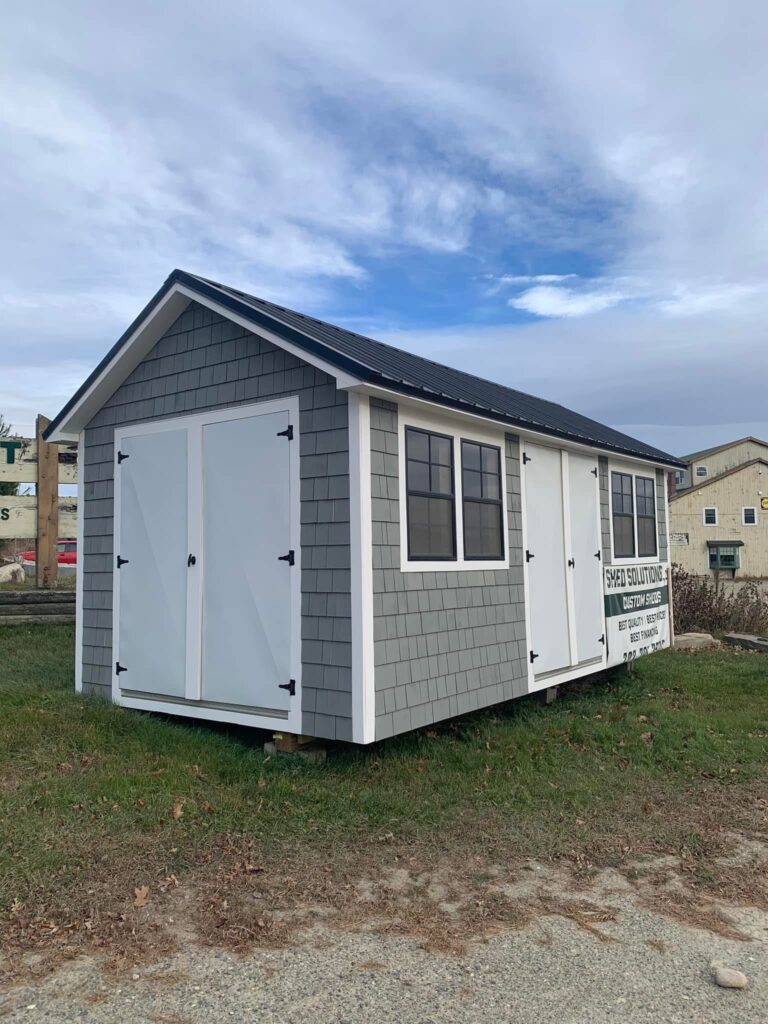 This 10’ X 20’ shed with pre-dipped cedar shingle siding is currently for sale. It has two sets of metal wrapped double doors, four windows, a steeper pitch roof and extended overhangs. Price for this building is $14,885.24.